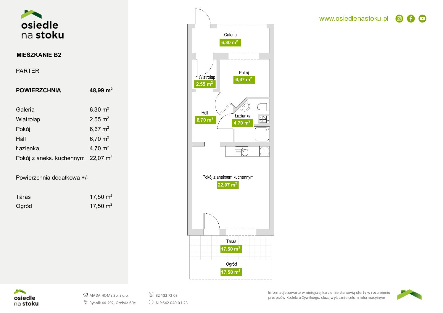 - 3 pomieszczenia (łazienka z prysznicem, sypialnia, pokój dzienny z aneksem kuchennym i wyjściem na taras i ogródek, przestronny wiatrołap)