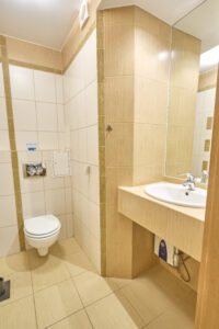 (kuchnia, pokój dzienny z wyjściem na balkon, toaleta)